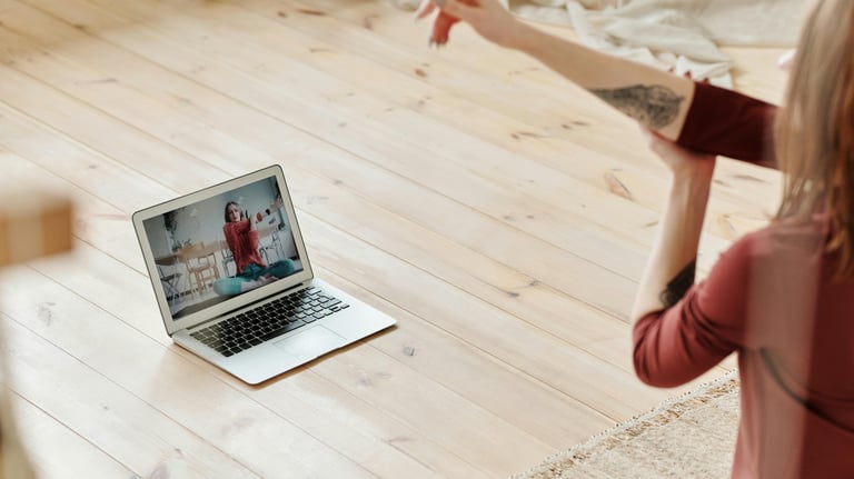 Kein geeigneter Raum vor Ort oder Ihre Mitarbeitenden sitzen im Home-Office? Online Yoga lässt sich optimal an diese Bedürfnisse an